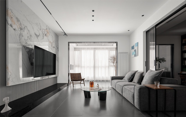 客廳在設(shè)計之初結(jié)合業(yè)主的想法,以黑白灰為設(shè)計思想核心,三者在空間里穿插平衡,留白,蘊含著東方美學(xué)的思想,給人以無限的想象空間,白與黑的極致碰撞,融合灰色調(diào)性讓空間層次更為豐富。