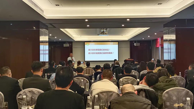 根據會議議程,由各部門負責人進行工作匯報和2022年工作規劃。首先是營銷中心副總裁兼總監梁金庫先生進行智齊家新品發布。新的一年,華美樂結合整裝市場現狀,對產品進行更新和調整,只有更好的產品的才能更好地服務于大眾,同時對整個集團的整裝營銷活動作出年度規劃和要求。要求大家以更自信和充滿激情的狀態來迎接未來的銷售工作。